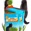 BENEFICIOS Los gatos necesitan una dieta equilibrada para una salud óptima, pero no pueden obtener todos los nutrientes que necesitan de la comida seca para gato, la hierba para gato proporciona fibra y vitaminas que de otra manera pueden faltar. La fibra de la hierba también previene la formación de bolas de pelo que se forman en el estómago o en los intestinos del gato como resultado de su aseo. La hierba para gato no es tóxica para ellos, por lo que reemplazar las plantas de interior con ella permite que el gato disfrute comiendo vegetales sin consecuencias negativas. su gato se lo agradecerá.