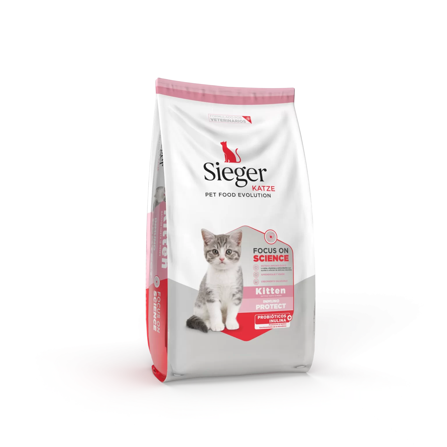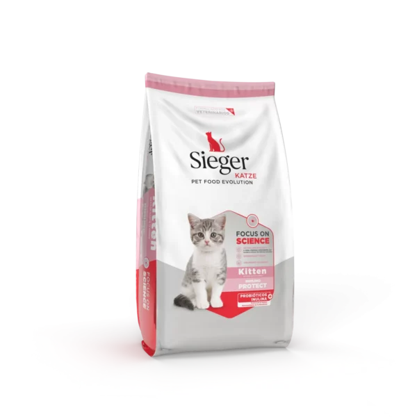 Sieger Katze Kitten Inmuno Protect es un alimento diseñado para cubrir los requerimientos nutricionales del gato cachorro desde la fase del destete hasta su primer año de vida. Su formulación colabora con el óptimo crecimiento y desarrollo del gatito.