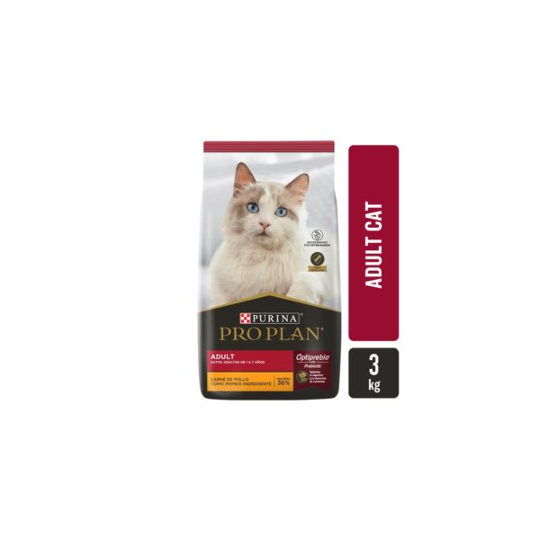 PRO PLAN® Cat Adult con OptiDigest formulados con OptiDigest y pollo o salmón fresco, proporcionan una nutrición completa, equilibrada y de alta calidad para gatos adultos entre 1 y 7 años.