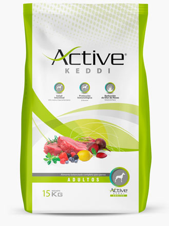 Alimento elaborado para perros adultos activos, posee ingredientes naturales e innovadores para el mercado de nutrición de mascotas. Contiene arándanos deshidratados (acción antioxidante natural, antiinflamatoria, protección de las vías urinarias, antidiarreico, etc.), frutilla deshidratada (antioxidante, rica en betacarotenos, vit. c y polifenoles) y limón deshidratado (vit. C, propiedades antitóxicos, efecto cicatrizante, etc.).