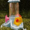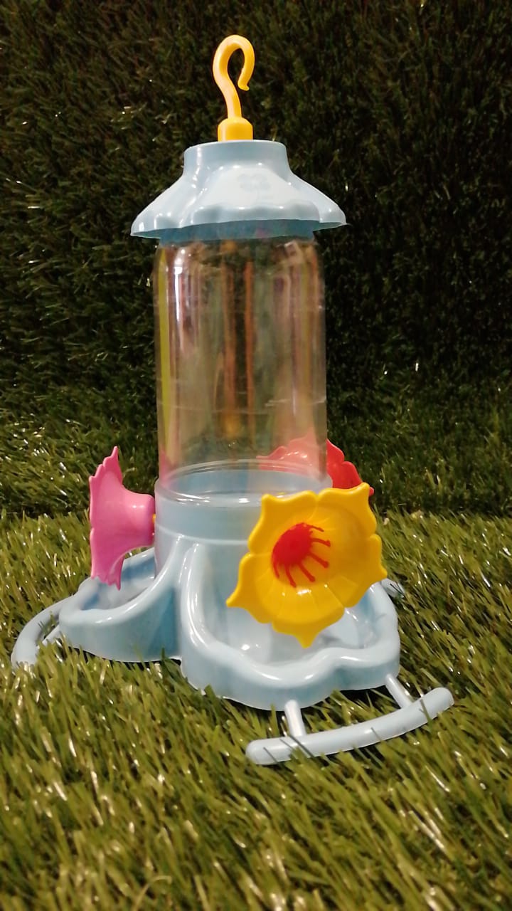 Bebedero plástico para colocar en el jardín Su diseño hace que estas hermosas aves lleguen al bebedero posee 4 flores de plástico aptas PARA EL PICO DEL AVE. Se le puede preparar alimento Néctar marca Exzootix se prepara: Cada 5 partes de agua agrega 1 de azúcar. Para completar el recipiente necesitará 40gr. Para evitar hongos y bacterias, debe limpiar y desinfectar el bebedero cada 2 o 3 días. Debe llenar de agua el borde para evitar invasión de hormigas En época de poca Floración es cuando el picaflor mas utilizara el bebedero.